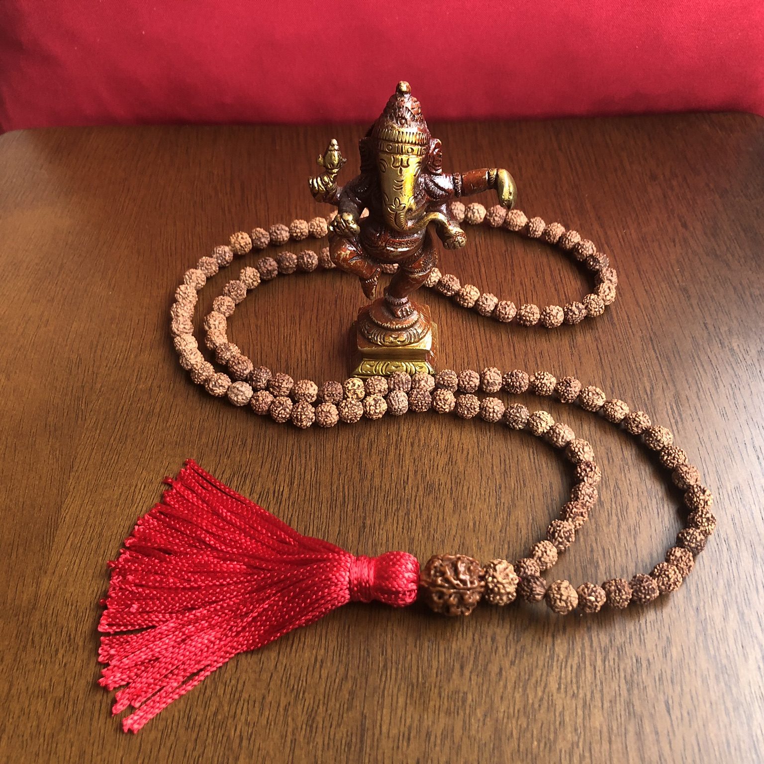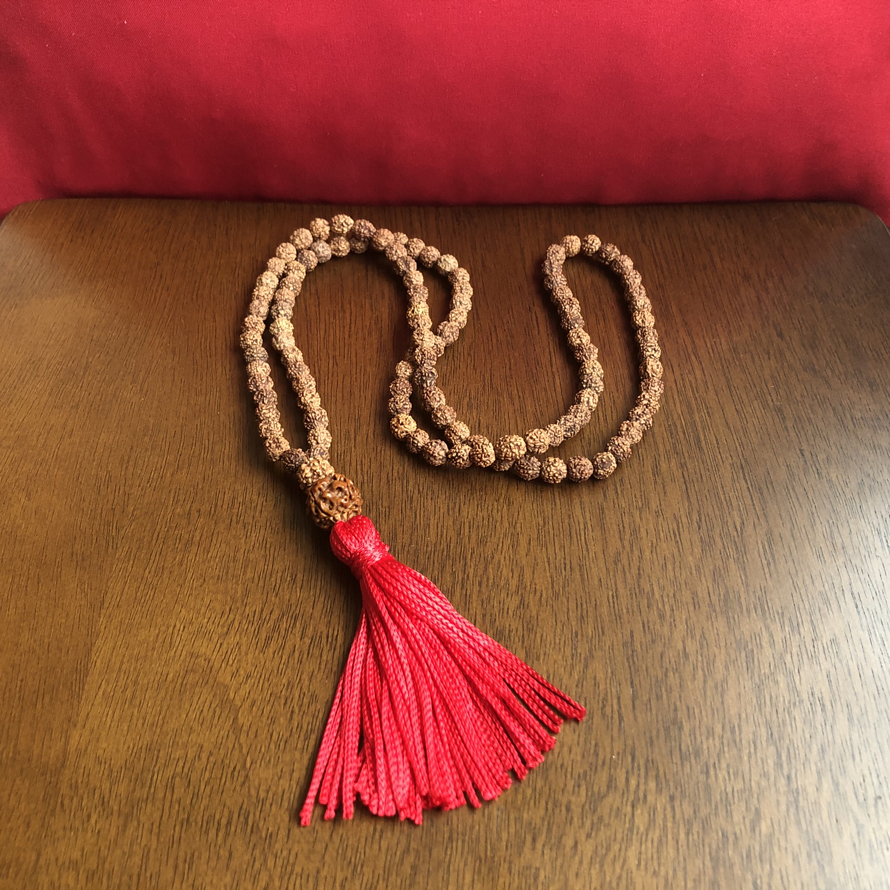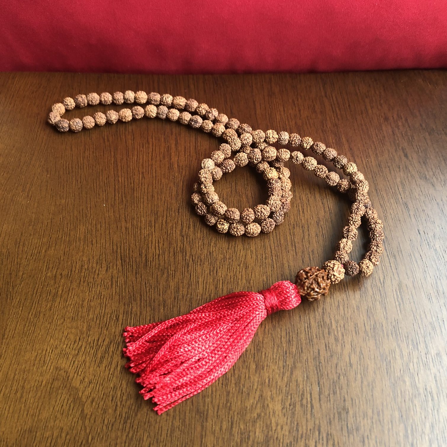 Japamala de Rudraksha Tradicional Red com 108 Contas de 8mm Sementes Importadas da Índia. Produto artesanal sujeito a variações de cor e tamanho.